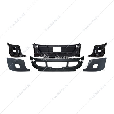 Complete 3-Piece Front Bumper Set With Fog Light Hole For 2008-2017 Freightliner Cascadia