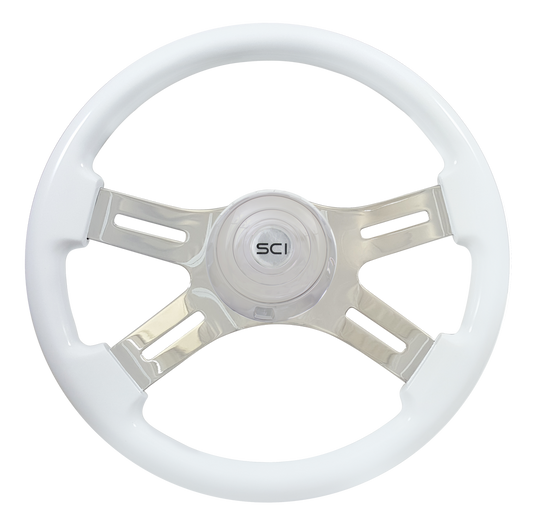 Jasper - 18" Poly 2-spoke w/Slot Cut Outs, Chrome Bezel & Black Horn Button - SCI Logo
