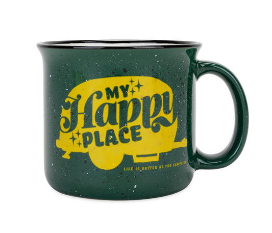 Life Is Better at the Campsite 14oz Ceramic Mug - "My Happy Place", Green