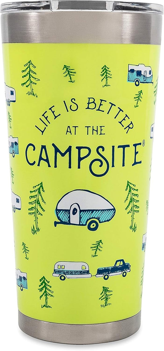 Life Is Better at the Campsite 20oz Tumbler, Green/RV Sketch Pattern
