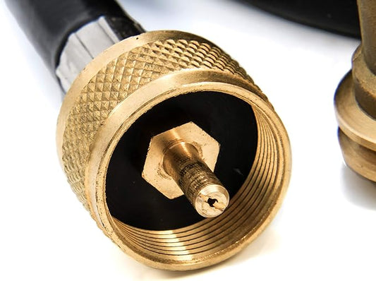 Propane Brass Tee with 3 Port and 12' Hose - Black/Gold