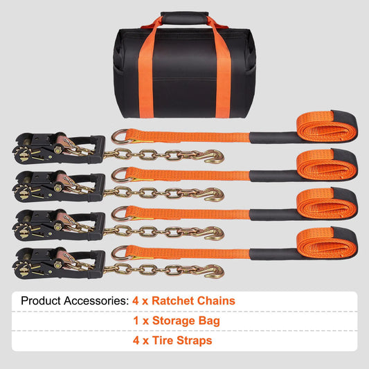 Auto - UTV - ATV Tire Tie Down 2" X 8' Strap Ratchet 18" Chain Lead Grab Hook 4 Pack
