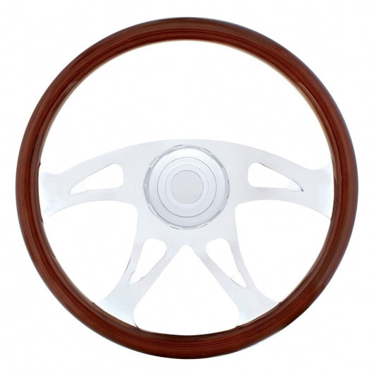 18" Steering Wheel with Chrome Horn Bezel and Horn Button - Woodgrain