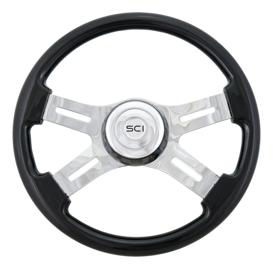 18" 4 Spoke Steering Wheel with Hub & Horn Button Kit - Chrome