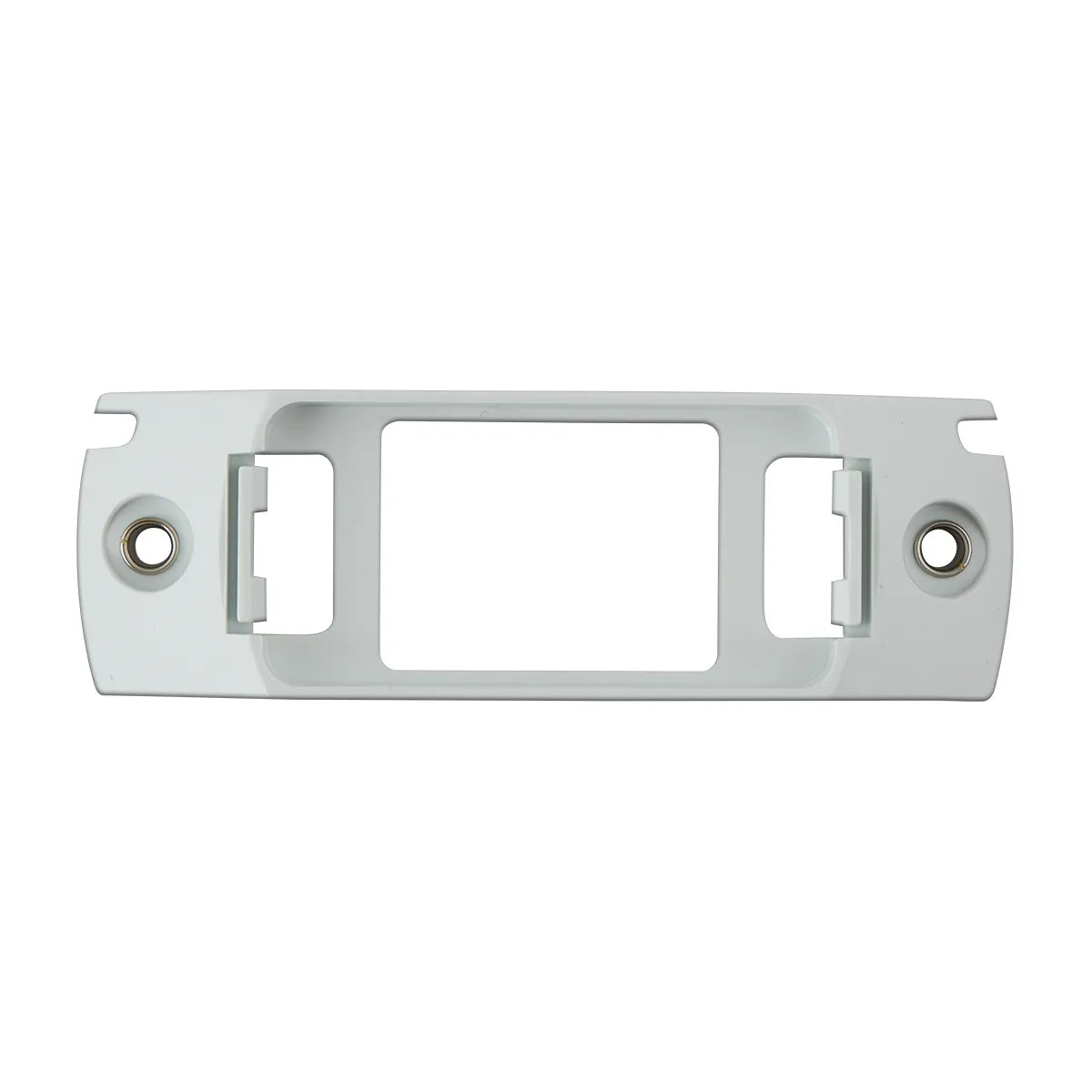 The Adapter Mount Rail Style Bracket for Small Rectangular Light features white plastic rail style rim and is designed to fit lights measuring 4-3/8" (L) x 1-3/8" (W) x 7/8" (H). It comes with a gasket and 2 screws for easy installation, and is made of high-quality plastic material.